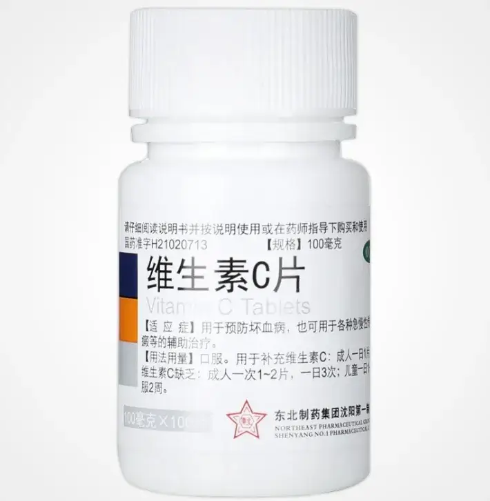 东北制药维生素C片(5-6r/瓶),每日1片/100mg口服。